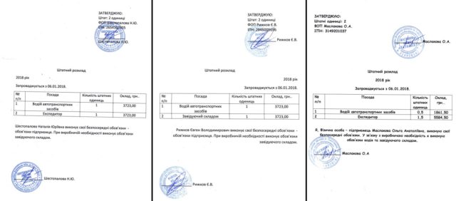 Натомість, підприємці подали ряд аналогічно побудованих довідок, структурно та змістовно. Наприклад, щодо штатного розпису.