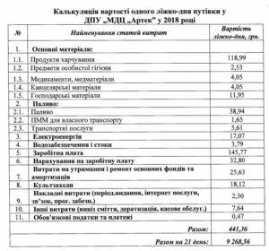 Ліжко-день коштує 441 грн., з яких 146 грн. іде на зарплату, а 119 грн. – на харчування.