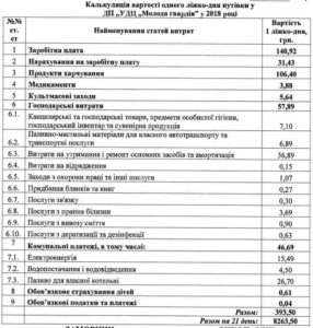 Ліжко-день коштує 394 грн., з яких 141 грн. іде на зарплату, а 106 грн. – на харчування.