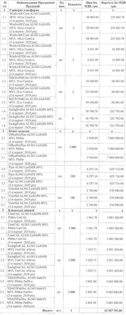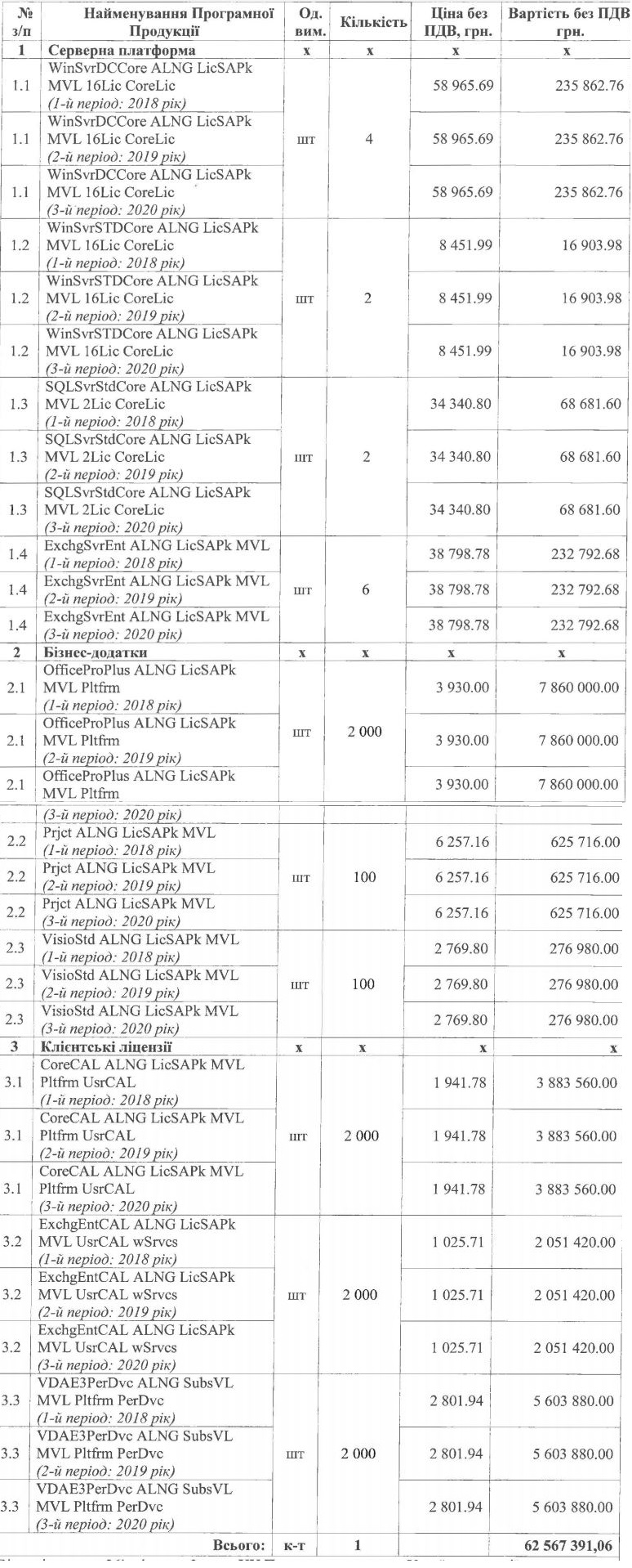 Йдеться про серверну платформу, бізнес-додатки та клієнтські ліцензії, які постачаються на строк із 1 квітня 2018 року по 31 березня 2021 року.