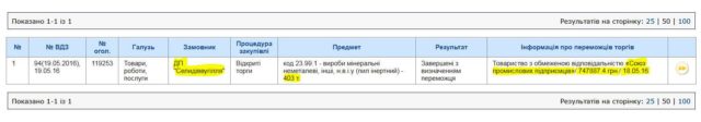 Сам «Союз промислових підприємців» всього тричі безпосередньо укладав з держпідприємствами договори поставок пилу – двічі із «Шахтою ім. М.С. Сургая» та одного разу із «Селидіввугіллям». За цими договорами вартість однієї тонни пилу становила – 2 598 грн (договір від 11 липня 2017 року), 2 030,70 грн (договір від 30 листопада 2016 року), 1856 грн (договір від 18 травня 2016 року на скріншоті з “Віснику державних закупівель”) .