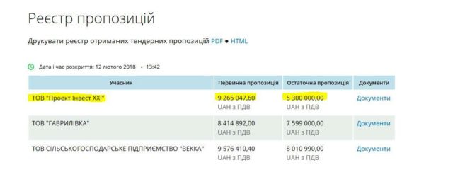 26 лютого за результатами відкритих торгів дитячий центр «Молода гвардія» замовив ТОВ «Проект Інвест ХХІ» 84 450 кг м’яса. Аби отримати цей підряд, у ході аукціону фірма понизила свою первинну цінову пропозицію майже вдвічі – із 9,27 млн грн до 5,3 млн грн.