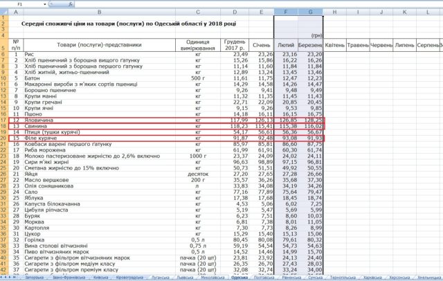 Разом з тим, Державна служба статистики у лютому-березні не фіксувала значних коливань у ціні на м’ясо. Наприклад, середня ціна курячого філе в Одеській області у березні становила 91,93 грн, тоді як у лютому – 93,08, тобто відбулось здешевлення на один відсоток. Середні ціни яловичини та свинини протягом місяця зросли на 0,5-1%. Тож піднімати на щотижня ціну на 10% у постачальника і замовника не було підстав.