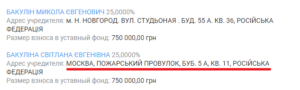 Адресу «Москва, провулок Пожарський, 5а, квартира 11» Світлана Бакуліна вказала під час реєстрації фірми ТОВ «Рінтол» в Україні.
