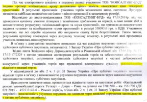 Отримавши лист, замовник одразу ж звернувся у Західний офіс Держаудитслужби в Рівненській області. Держаудитори відповіли у той самий день, порекомендувавши відмінити торги для