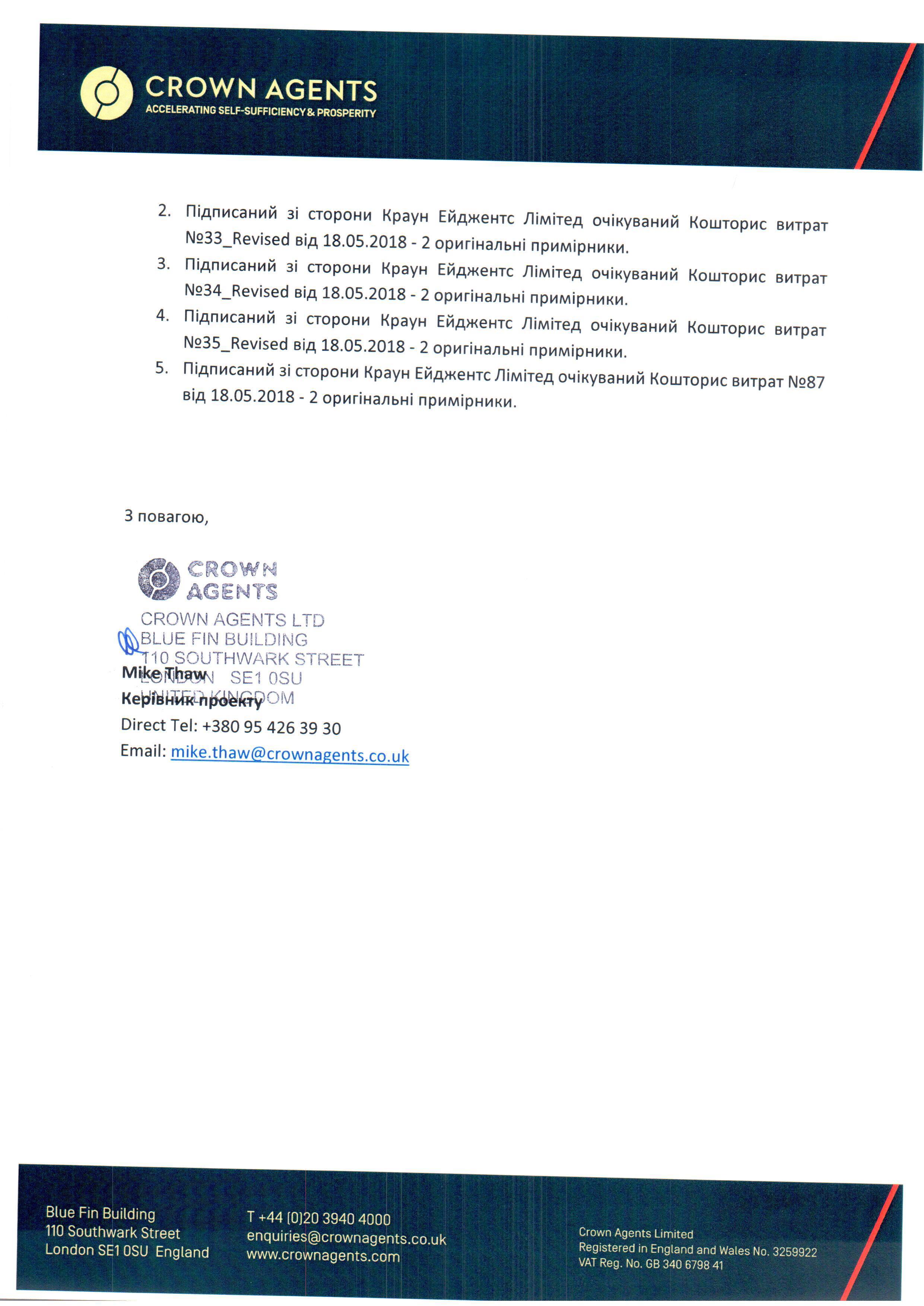 Про це свідчать кошториси витрат «Crown Agents» («Краун Ейдженс») від 18 травня 2018 року, які опинились у розпорядженні «Наших грошей».