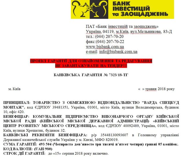 Наступне ТОВ «Варда Спецбуд Монтаж» пропонувало на 5% нижчу ціну в 88,83 млн грн., проте його теж відхилили. Ця фірма пов’язана з оточенням директора КП «Житлоінвестбуд-УКБ» В’ячеслава Непопа та Михайла Голиці – екс-очільника Департаменту будівництва та житлового забезпечення КМДА та президента АТ «ХК «Київміськбуд». Замість забезпечення тендерної пропозиції у формі банківської гарантії вона завантажила в систему документ, у якому було зазначено: «ПРОЕКТ ГАРАНТІЇ ДЛЯ ОЗНАЙОМЛЕННЯ ТА РЕДАГУВАННЯ НЕ ЗАВАНТАЖУВАТИ НА ТЕНДЕР!!!».
