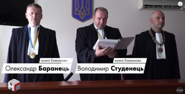 Також журналісти встановили, що в червні з відстороненим суддею Ємельяновим біля його неофіційного офісу зустрічалися суддя Господарського суду Києва Роман Бойко та представник «Асоціації суддів та працівників судів України» Святослав Пограничний.