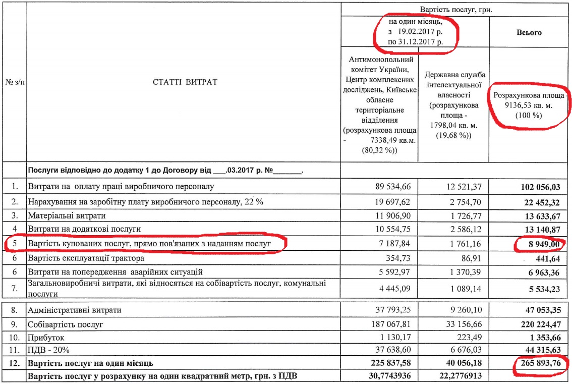 Торік послуги для такої ж площі коштували на чверть дешевше – 266 тис грн. за місяць, або 29 грн./кв. м. Тоді там сиділа ще й Державна служба інтелектуальної власності. У кошторисах зокрема виросли витрати на якісь «інші послуги» та оплату праці.