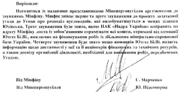 З розданих урядовому комітету документів відомо, що 8 червня між Мінфіном та Міністерством енергетики відбулася нарада для пошуку для узгодження розбіжностей. Нарада пройшла на наступний день після відставки міністра фінансів Олександра Данилюка, делегацію Мінфіну на нараді очолював заступник міністра Сергій Марченко. Від Міненерго були заступник міністра Юлія Підкоморна та начальник відділу економічного супроводу інвестиційних проектів в нафтогазовому комплексі Департаменту нафтогазового комплексу Юрій Вялик.