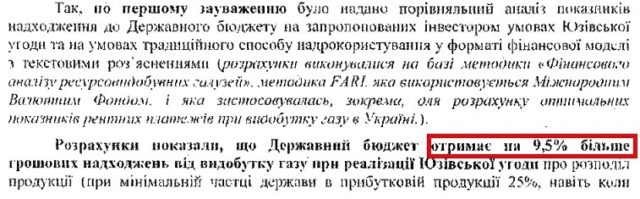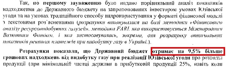 Міненерго у відповідь на критику Мінфіна використало порівняльний аналіз, де показало, що за нових умов угоди про розподіл продукції бюджет отримає на 9,5% більше, ніж при традиційному режимі надрокористуванні. Порівняння робилося з методикою FARI, яку нібито використовує Міжнародний валютний фонд.