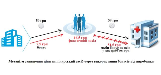 Однак, самі дистриб’ютори не включали бонуси у ціну ліків, які збували бюджетникам. Для них вони були можливістю докинути зверху до кінцевої ціни «дотацію» від виробника, однак по факту продажу і виключно для себе. Простіше кажучи, у бонусах дистриб’ютори вбачали додаткове джерело чистого доходу.