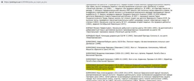 Зокрема, Борисенко був засновником ТОВ «Донуголь-Альянс», а пізніше – одним із трьох власників цієї фірми разом з Анатолієм Юговим та Оленою Литвиновою. Пізніше «Донуголь-Альянс» зареєстрували на ТОВ «Індекспром», раніше офіційно контрольоване невісткою колишнього голови парламентської фракції Партії регіонів Олександра Єфремова, який сьогодні перебуває під вартою, як підозрюваний у державній зраді. Єфремову інкримінують ряд статей, серед яких і незаконне заволодіння майном «Луганськвугілля».