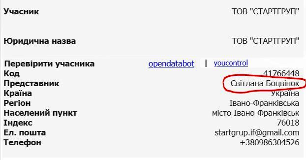 Контактною особою суперника у «Прозорро» вказана Світлана Боцвінок, відома як аспірант кафедри соціальної психології Прикарпатського національного університету імені Василя Стефаника, тобто замовника. На місцевих виборах 2015 року вона була членом Івано-Франківської обласної виборчої комісії від партії «Народний фронт».