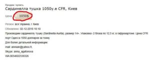 За даними з відкритих джерел, у грудні 2018 року сардинела без голови в порту Одеси коштувала в 2,5 раза дешевше – $1,05, або 29,81 за кілограм. За даними джерела «Наших грошей» у ДФС, у січні 2019 року сардинелу та аргентину ввозили приблизно за такою ж ціною. З урахуванням ПДВ і вартості доставки по країні це все одно було б дешевше.