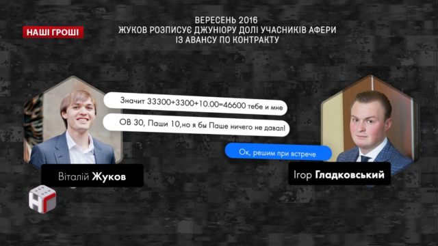 Раніше повідомлялося, що підконтрольні Гладковському-молодшому та Жукову ТОВ «Оптимаспецдеталь» та ТОВ «Фірма «Ренал» тільки на запчастинах для бронетанкової техніки «прокачали» 250 млн грн від оборонних заводів, переплата складала 100%.