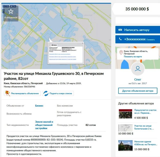Зауважимо, що у березні цього року ділянку на вул. Грушевського, 30 було виставлено на продажза $35 млн.