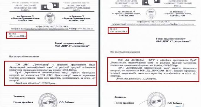 «Промтехцентр» надав відповідний лист №500/1, а «ТД «Берислав Збут» – №501/1.
