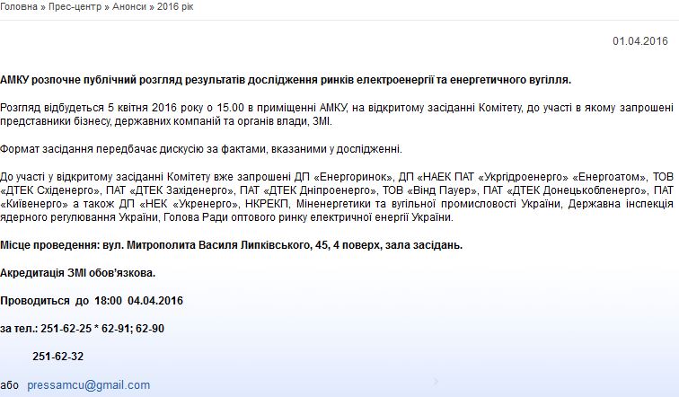 За даними «Наших грошей», проект рішення передбачав досить різкі висновки та формулювання стосовно монополії ДТЕКу. Все-таки компанія контролює по 80% «маневрової» генерації ТЕС і ринку енергетичного вугілля, і відтак банальною зупинкою поставок палива може вимкнути світло всій Україні.