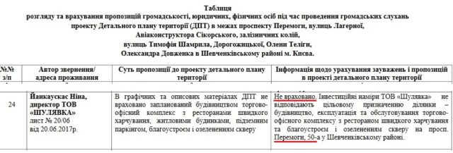 На громадських обговореннях пропозицію по включенню в ДПТ будинку на вказаній ділянці не було враховано, оскільки це також суперечить цільовому призначенню ділянки.