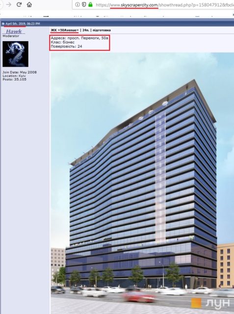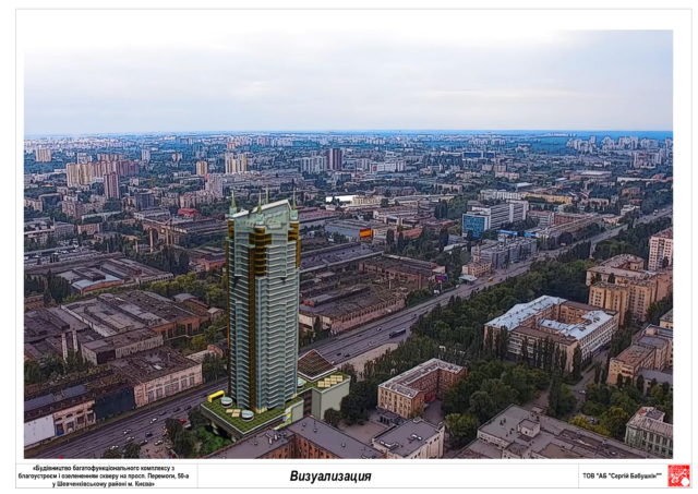 Разом з тим на ізраїльському сайті «Ukraine Israel Real Estate Marketing» (www.u-i.co.il/), де здійснюється продаж квартир у об’єкті на просп. Перемоги, 50-а, сказано, що ця будівля матиме 39 поверхів.