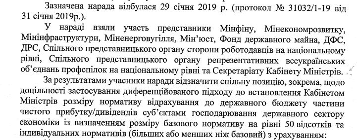 Нагадаємо, що на початку квітня міністерство економічного розвитку та торгівлі внесло на розгляд урядового комітету проект постанови уряду, яким запропонувало знизити відрахування  дивідендів державними підприємствами на третину – до 50%від прибутку.