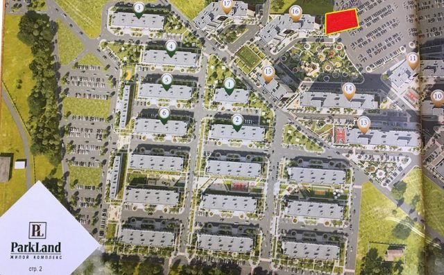 Але одна із земельних ділянок під парковкою виявилась такою, що належить не контролерам забудовника, а третій приватній особі, а та – не надавала згоди на передачу землі під стоянку. Відповідно, те, що на відведеному у буклеті місці під стоянку буде стоянка – ще вилами по воді писано. І майбутні покупці про це не знали. Ось ця маленька червона плямка – це і є те місце:
