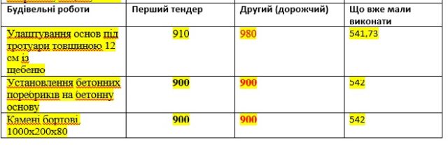 Додатковою угодою обсяги ремонту зменшили до 226 тис грн. і договір отримав статус виконаного. В звіті було вказано, що фірма дістали бордюри, зробила під них траншеї, оновила частину дороги для пішоходів.