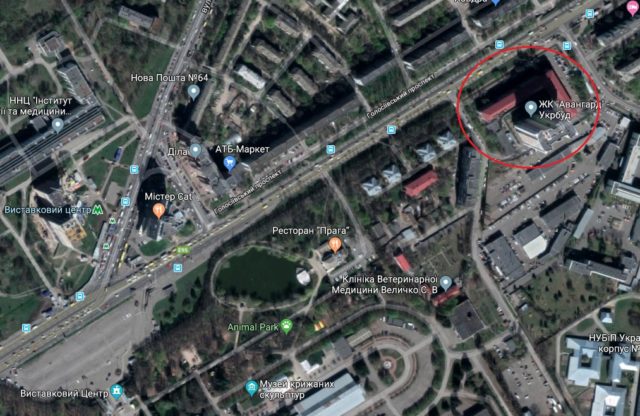 Служба зовнішньої розвідки України виступила замовником будівництва житлового будинку на вказаній ділянці. Девелопером ЖК «Авангард» стало ТОВ «Укрбуд Девелопмент», , кінцевим бенефіціарним власником якого є нардеп Максим Микитась. Будівельні роботи проводило ПАТ «Будівельна компанія «Укрбуд».