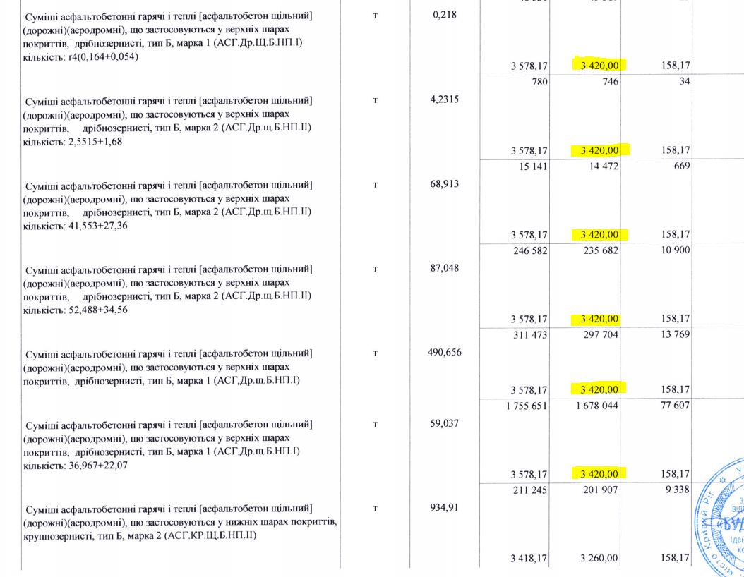 Крім того, Полтавська САД законтрактувала такий асфальтобетон типу Б марок 1-2 у ТОВ «Альтком» для реконструкції траси Н-31 Дніпро – Царичанка – Кобеляки – Решетилівка по 2 333 грн./т. При цьому обсяги поставки були співставними з обсягами Департаменту.