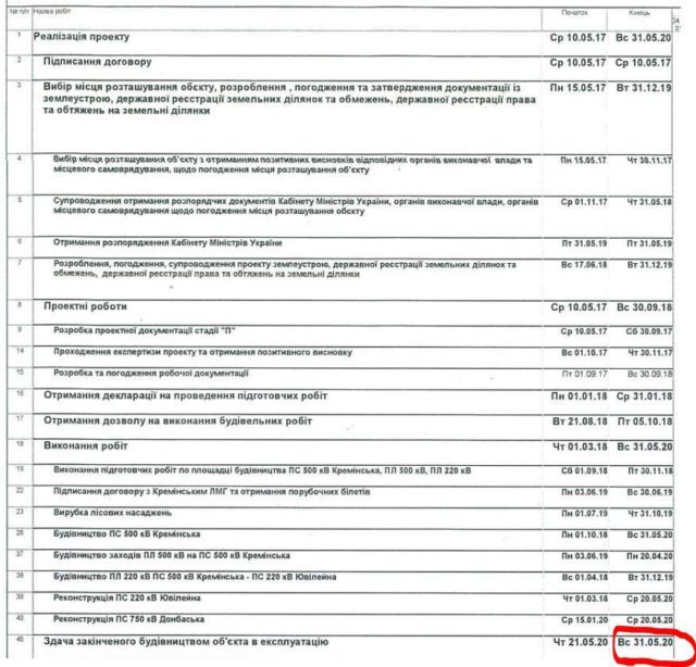 В угоді передбачались і штрафні 0,1% пені за кожен день прострочення, і 7% штрафу за прострочення будівництва більш, ніж на місяць, і стягнення з підрядника 64 млн грн. банківської гарантії за будь-який провал. Але ніхто ні з кого нічого не стягував, бо «Укренерго» миролюбно продовжувало строки. Тому тепер замість листопада 2018 року об’єкт планують здати лише у травні 2020 року.