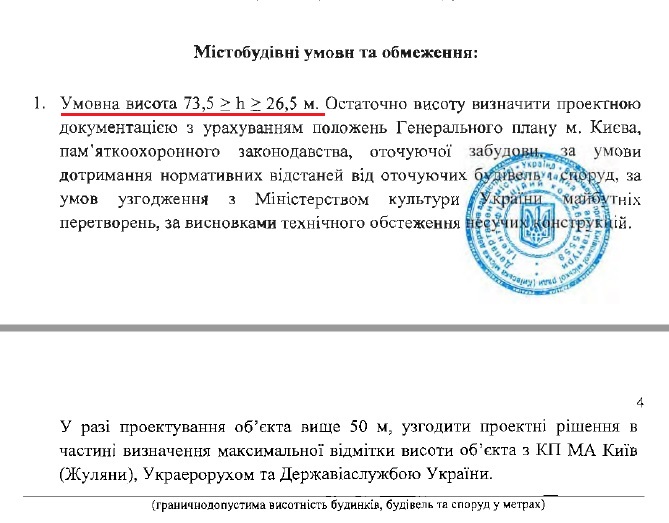 МУО видані на реконструкцію нежитлових будівель під житловий комплекс. Його висота буде від 26,5 до 73,5 м. Остаточну висоту буде визначено у проекті забудови з врахуванням погодження Мінкульту, а також аеропорту «Київ» (Жуляни), Украерорухом та Державіаслужбою.
