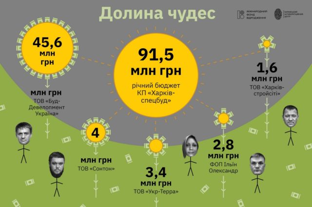 Але з 2015 року судовий реєстр не містить жодної інформації про цю справу. А після цього комунальне «Харківспецбуд» почало працювати через іншого підрядника – ТОВ «Буд-Девелопмент Україна». З 2016 року ця фірма отримала від підлеглих Долини 196 контрактів на загальну суму 45,6 млн грн. При чому всі угоди підписані по неконкурентній процедурі.