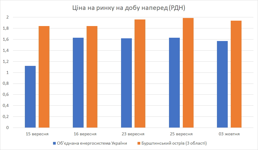 Загалом ціна електроенергії на РДН у Бурштинському острові тепер на 13%-60% вища від ціни електроенергії в ОЕС України.
