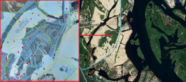 Червоним позначені ділянки в Козині, витребувані з незаконнчого володіння