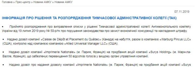 • Фінальне рішення АМКУ. Лише в стрічці новин. Без можливостей пошуку