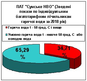 Всього у 2018 році ТОВ «Сумитеплоенерго» надало послуг – 1,42 млн кубометрів гарячої води на суму 113,58 млнгрн. , ПАТ «СНВО» – 0,58 млн кубометрів на 41,08 млн грн.