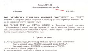 Тобто, «УБК «Континет» всі угоди оренди техніки з «Ортак ЛТД» укладено 2 січня. Але ще в жовтні ця фірма змінила власників, директора та  назву і стала  «Майнц груп». При цьому. договір оренди від імені «Ортак ЛТД» підписував старий директор Роман Терехов.