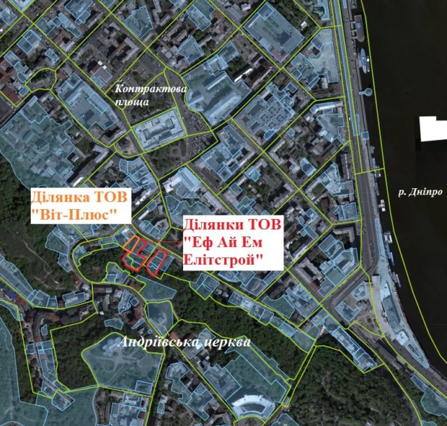 За даними Публічної кадастрової карти, поруч із ділянкою, яку «Віт-Плюс» суд зобов’язав повернути, сімома ділянками загальною площею 0,41 га на праві власності користується  ТОВ «Еф Ай Ем Елітстрой». Зокрема, 0,12 га на вул. Боричів тік, 27 і 23/3, 0,19 га – у провулку Академіка Зелінського, 7, 10, 12, а також 0,09 га – у провулку Покровський, 5 і 7.