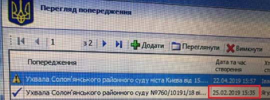 А ось АРМА свою частину – ні. Про це каже наше анонімне джерело. Нижче на скрині – версія Єдиного реєстру юридичних осіб, як її бачить реєстратор. Це – всі заборони по компанії ТОВ «Майдан-плаза». І ми бачимо, що працівники АРМА забезпечили ухвалу (тобто, звернулися до державних реєстраторів) лише 25 лютого 2019 року. Тобто, майже через рік після того, як мали це зробити.