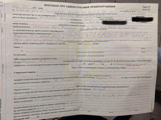 Працівники Національної поліції затримали і склали адміністративні протоколи на двох активістів, які знімали будівництво житлового комплексу по вул. Кудряшова, 8-10 у Києві. Про це у Facebook повідомив громадський активіст, експерт з будівництва Георгій Могильний.