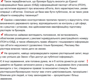 Справді, законопроектом планується щоб всі-всі-всі операції з продажу будь-якої нерухомості в Україні проводились тільки через рієлторів, внесених до спеціального Реєстру. І всі об’єкти нерухомості мають бути внесені до Єдиної бази даних та формування і реєстрації інформаційного паспорта об’єкта нерухомості. А вести Реєстр і Базу буде орган рієлторського самоврядування – Національна федерація фахівців у сфері рієлтерської діяльності.