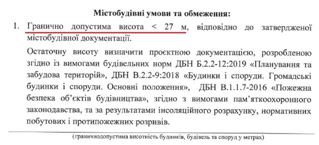 Відповідно до МУО, висота об’єкта має бути 27 м, однак остаточно вона буде визначена проектною документацією.
