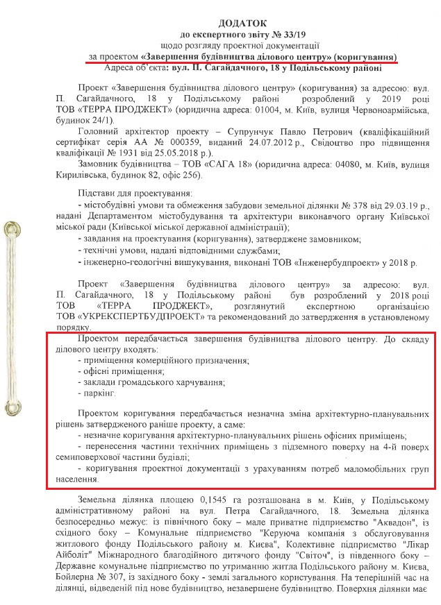 Це все вказано у містобудівних умовах та обмеженнях, які «Сага 18» отримала для проектування ділового центру на вул. Сагайдачного, 18.