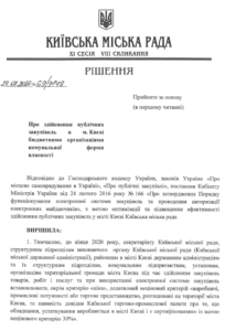 Громадська організація «Рада захисту конкуренції та споживачів» (далі – Громадська організація), метою діяльності якої є розвиток конкуренції та ринкових відносин, захист прав споживачів, в ініціативному порядку розглянула рішення Київської міської ради від 28.07.2020 № 69/9148 «Про здійснення публічних закупівель в м. Києві бюджетними організаціями комунальної форми власності» прийняте за основу столичними депутатами у першому читанні (далі – Рішення).