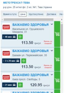 В аптеках Метотрексат-тева у такій самій формі продається у півтора-два раза дешевше за ціну для Криворізького психоневрологічного інтернату – по 113,50-142,75 грн. за флакон.
