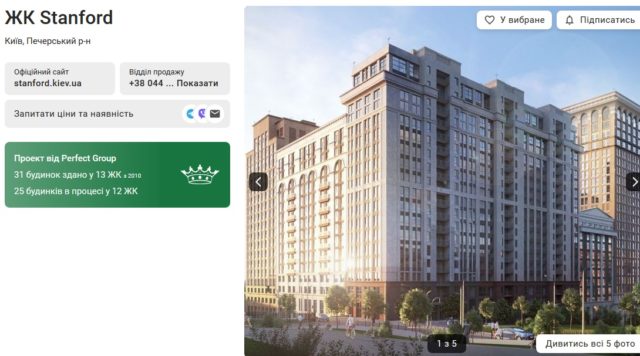 Нагадаємо, ТОВ «Катерпіллер» є замовником будівництва ЖК Stanford на вул. Предславинській, 35. Девелопером проекту є Perfect Group нардепа від ОПЗЖ Дмитра Ісаєнка.