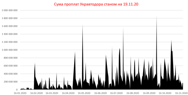 Загалом Служби автодоріг з початку 2020 року станом на 19 листопада відобразили у системі «Spending» проплати на 61,32 млрд грн.