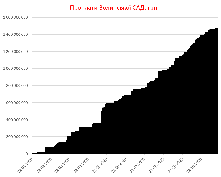 У жовтні середній розмір щоденних проплат через Держказначейство складав 497 млн грн (мається на увазі у робочі дні, коли ці проплати відбувались – по вихідним Держказначейство не працює). У листопаді рівень проплат впав до 260 млн грн. на день. Середній показник у квітні-листопаді, коли погода в Україні дозволяє ремонтувати дороги, з урахуванням останнього падіння становить 360 млн грн на день.