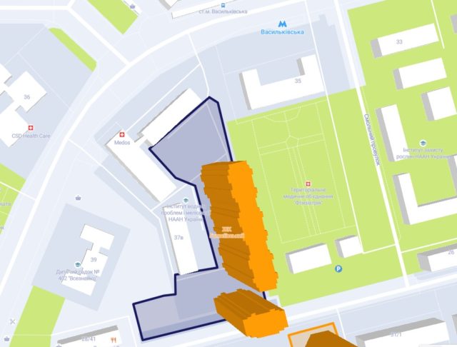 Державна архітектурно-будівельна інспекція України 25 січня видала Інституту водних проблем і меліорації Національної академії наук України дозвіл на будівництво житлового комплексу з вбудовано-прибудованими нежитловими приміщеннями та паркінгом на вул. Васильківській, 37 у Києві. Про це свідчать дані Порталу Єдиної державної електронної системи у сфері будівництва.